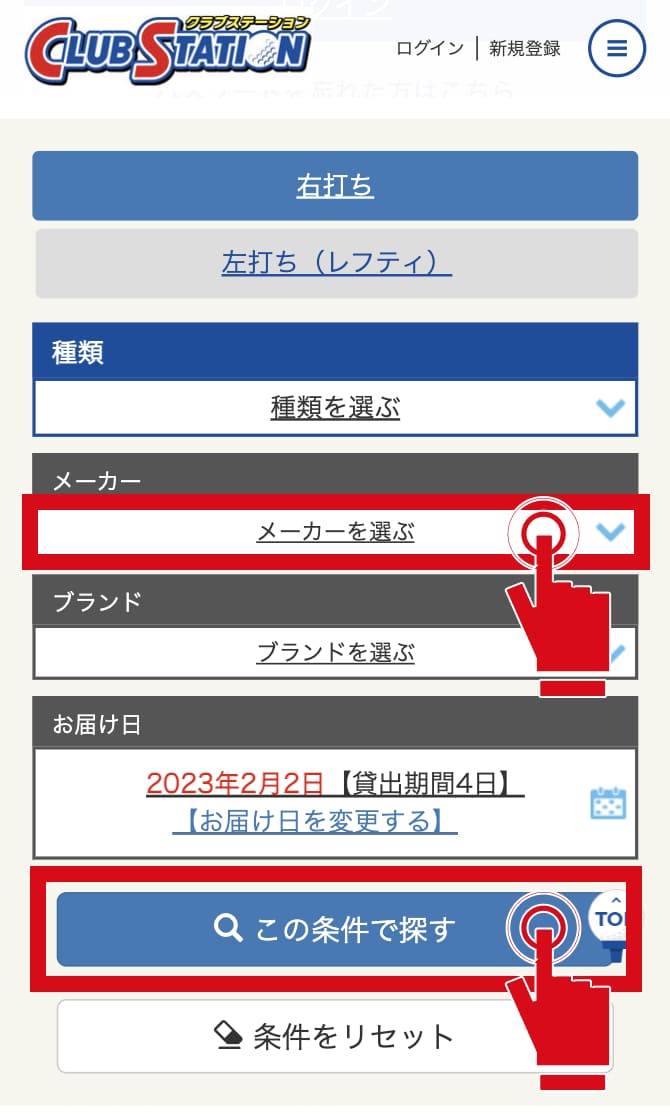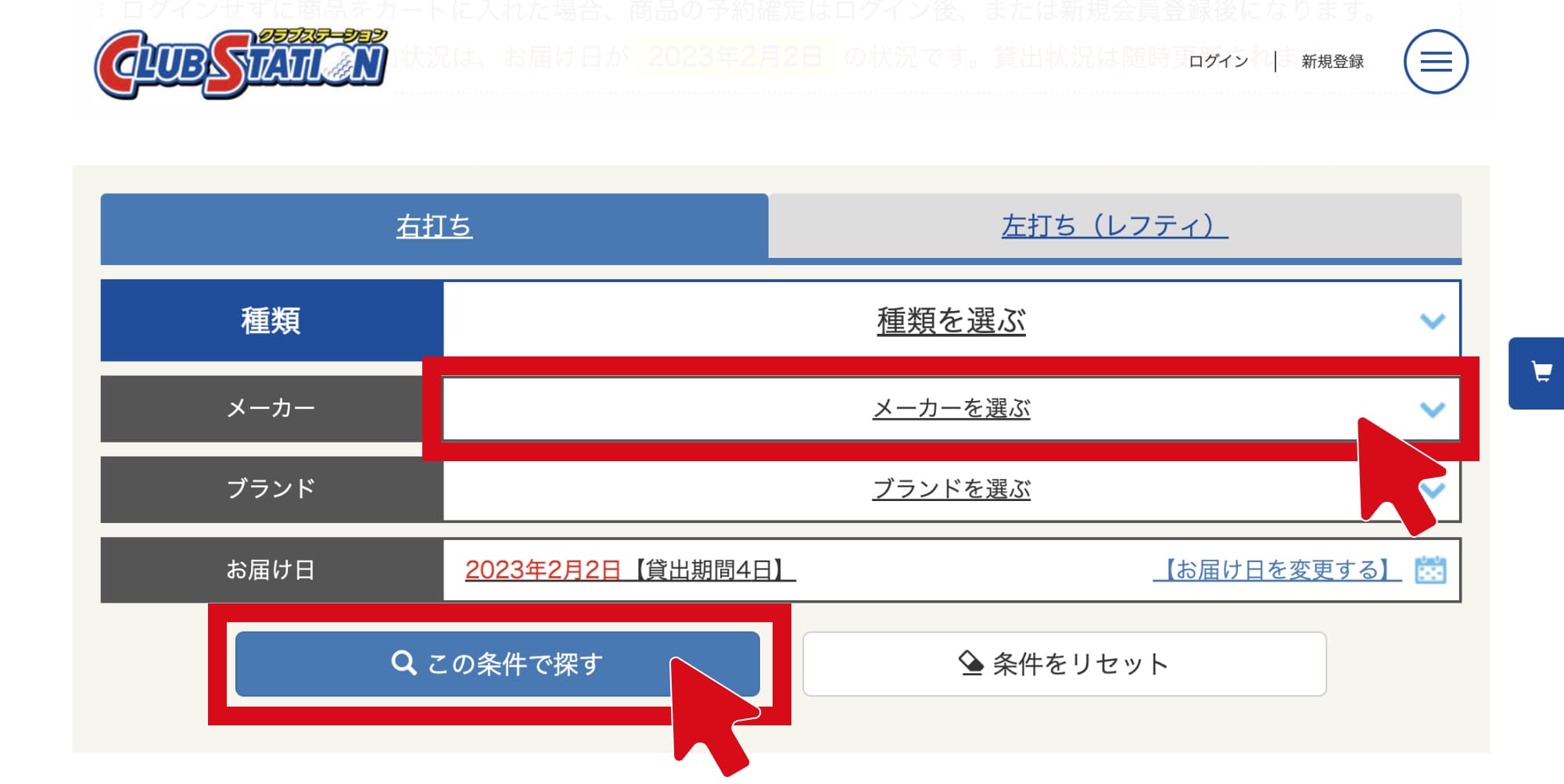 まずは【お届け日を変更する】というボタンよりご希望の日程をお選び頂き、クラブ選択へお進みください。